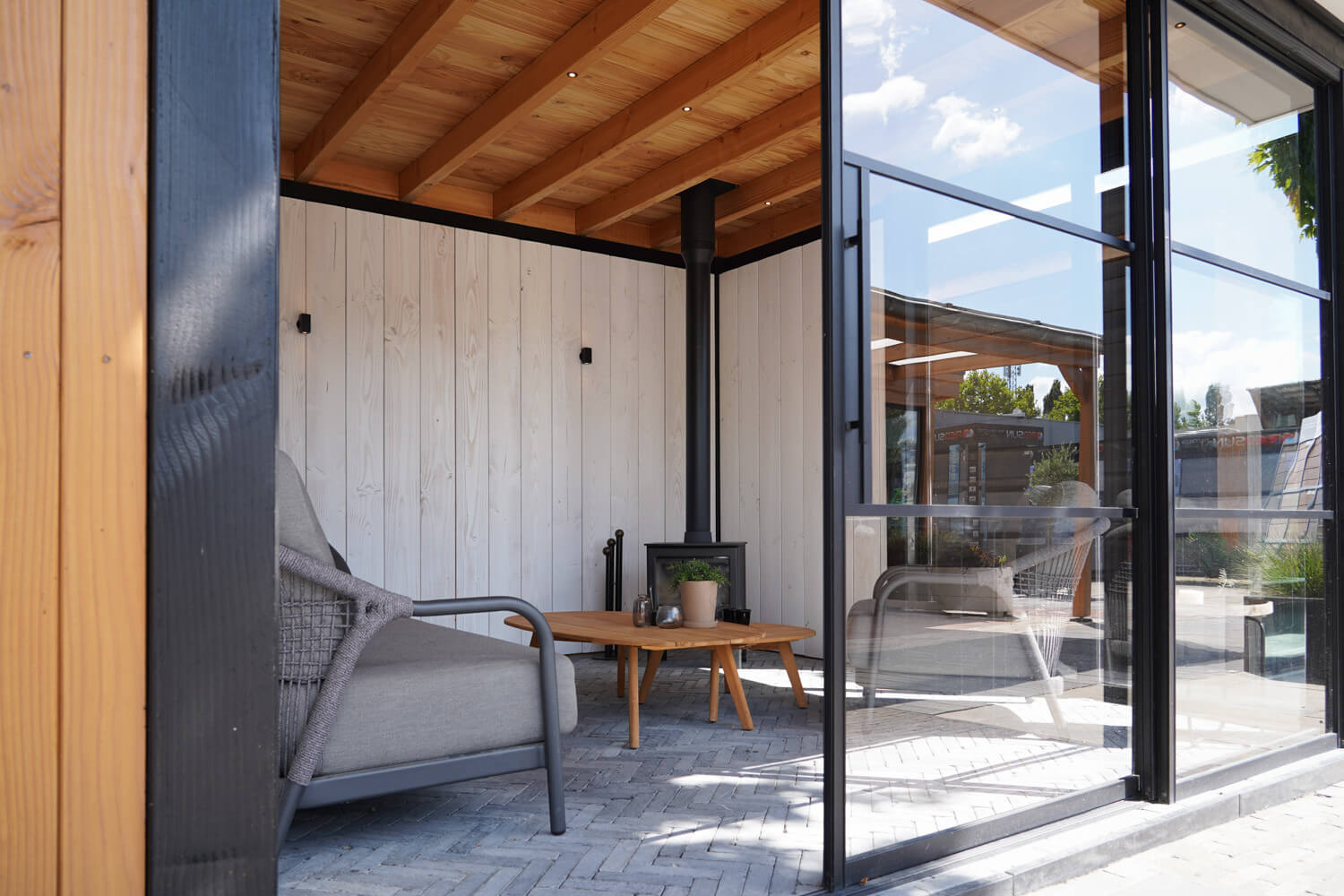 Een vrijstaande Douglas overkapping met glazen schuifwanden is een fantastische toevoeging aan elke buitenruimte. Douglas hout is een duurzame en natuurlijke houtsoort die lang mee gaat en weinig onderhoud nodig heeft. De glazen schuifwanden bieden bescherming tegen diverse weersomstandigheden terwijl u toch van het buitenleven kunt genieten. De glazen schuifwanden zijn gemakkelijk te openen en te sluiten, waardoor u de ruimte snel kunt aanpassen aan het weer en uw wensen. Bij warm weer schuift u de wanden open en geniet u van de frisse lucht, terwijl u bij koud of regenachtig weer de wanden kunt dichthouden en toch van de buitenlucht kunt genieten.